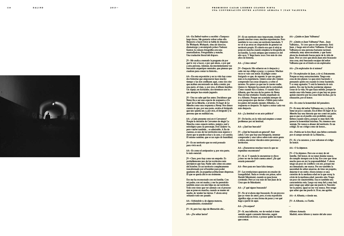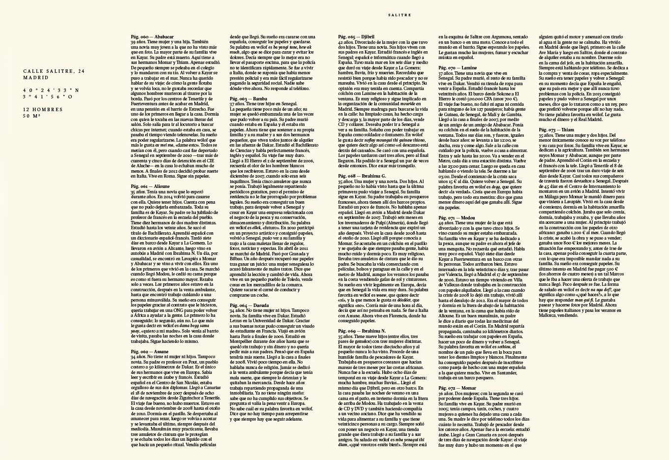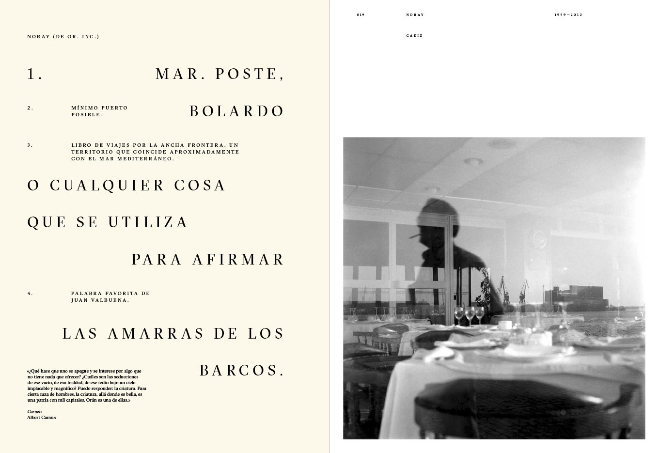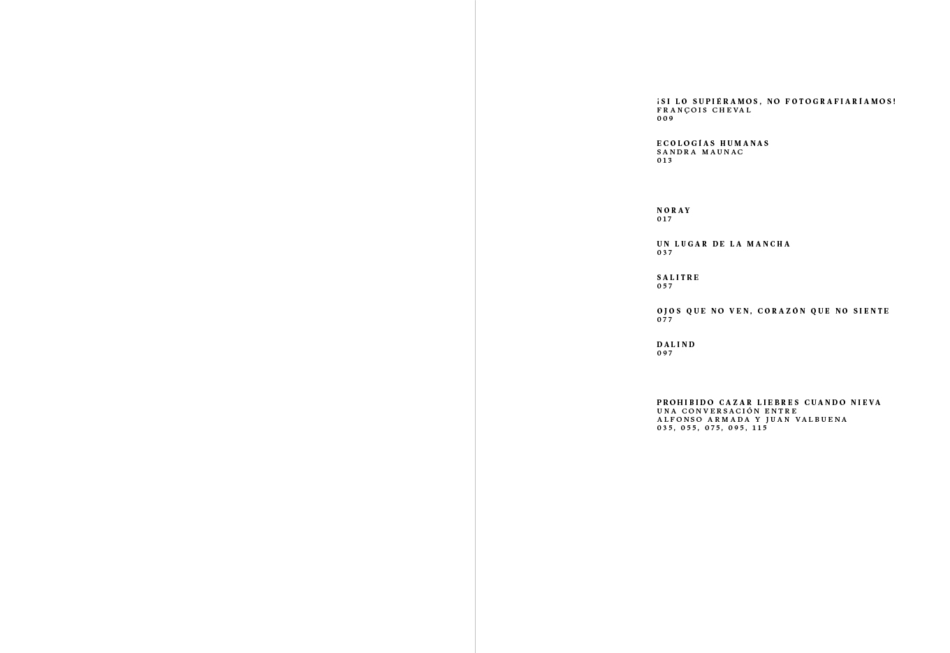 An incomplete atlas which, by combining words and images with geography and personal histories, seeks to explore the lives of people closely connected to the territories they inhabit or to the places they once had to abandon. (Featuring: Noray, 1999-2012 Un lugar de la Mancha, 2006-2020 Salitre, 2009-2014 Ojos que no ven, corazón que no siente, 2008-2018 Dalind, 2013- )