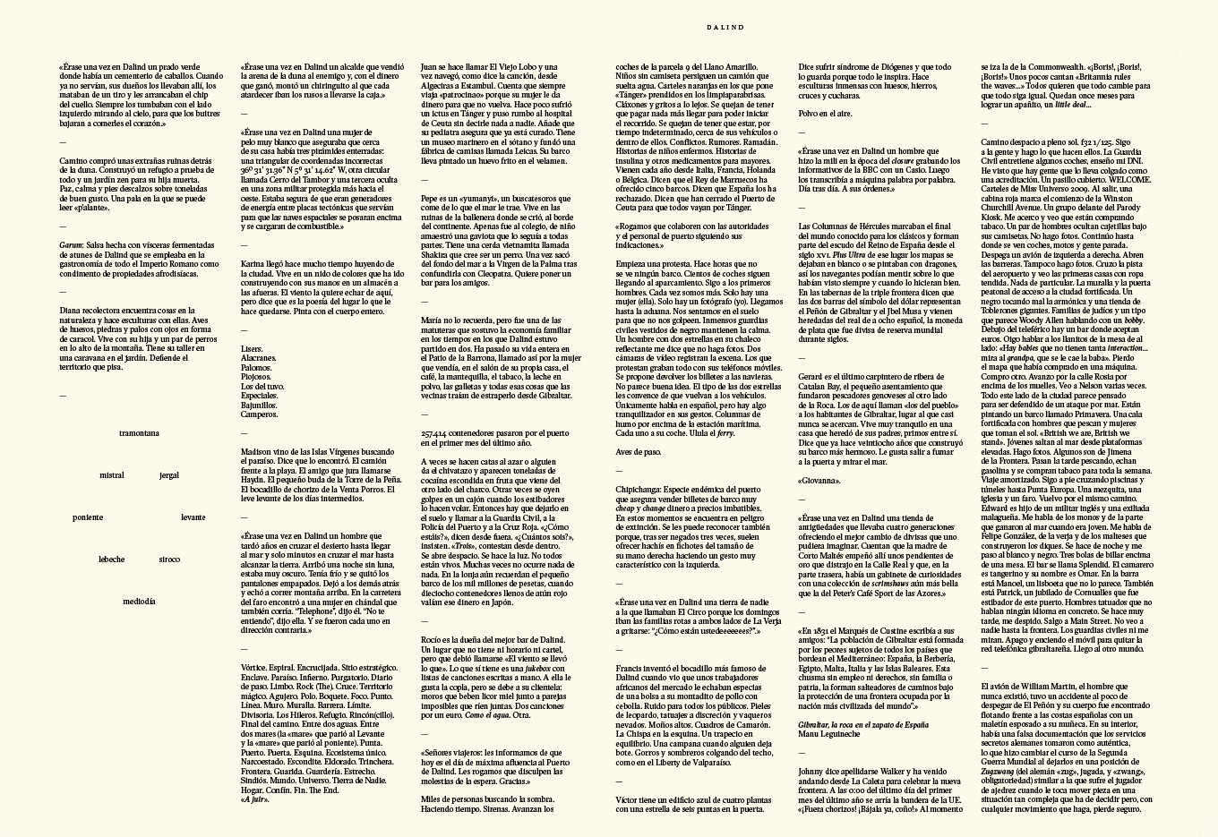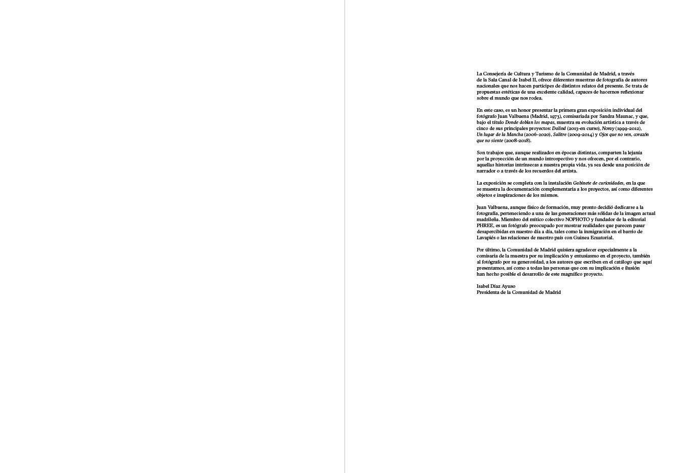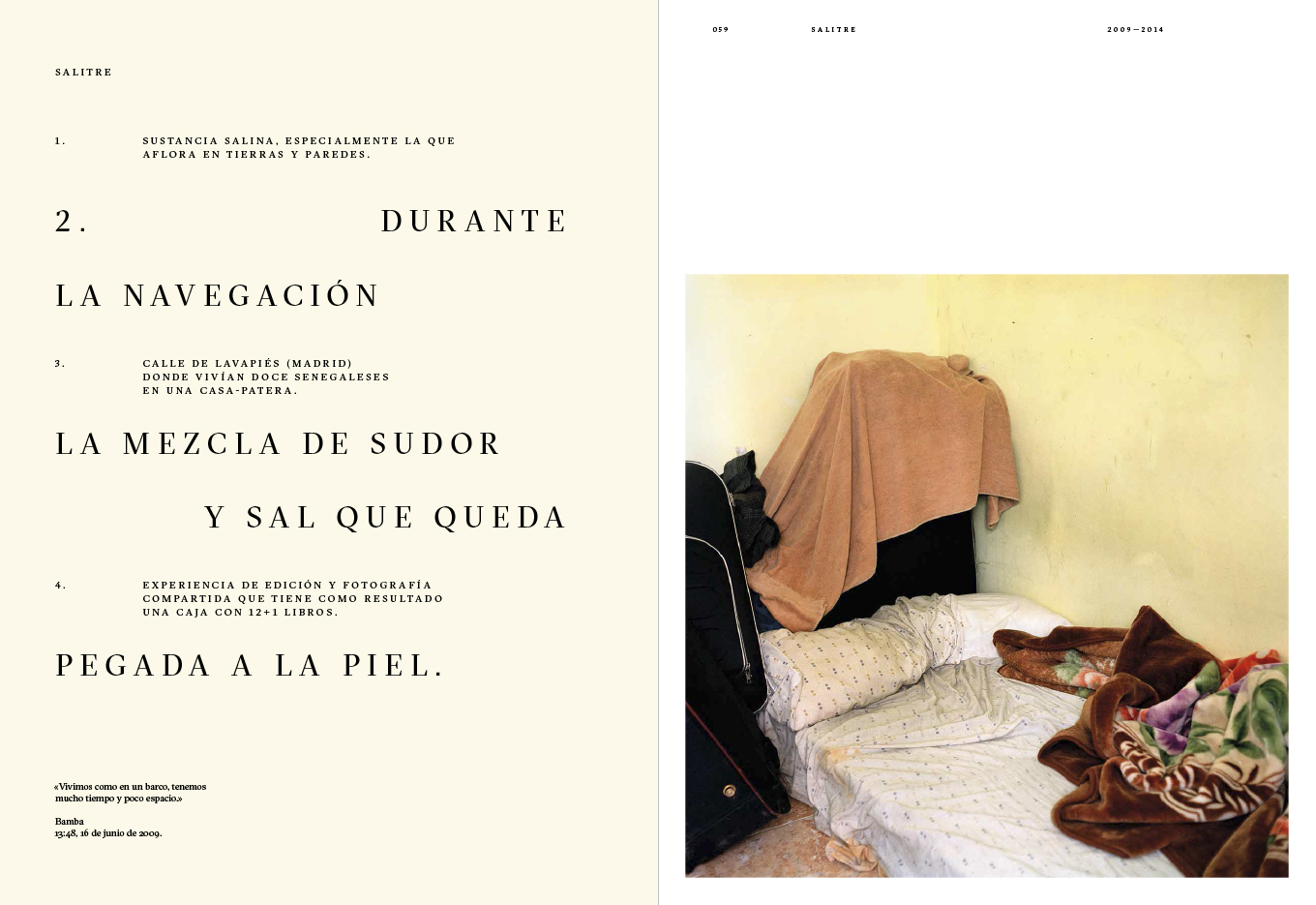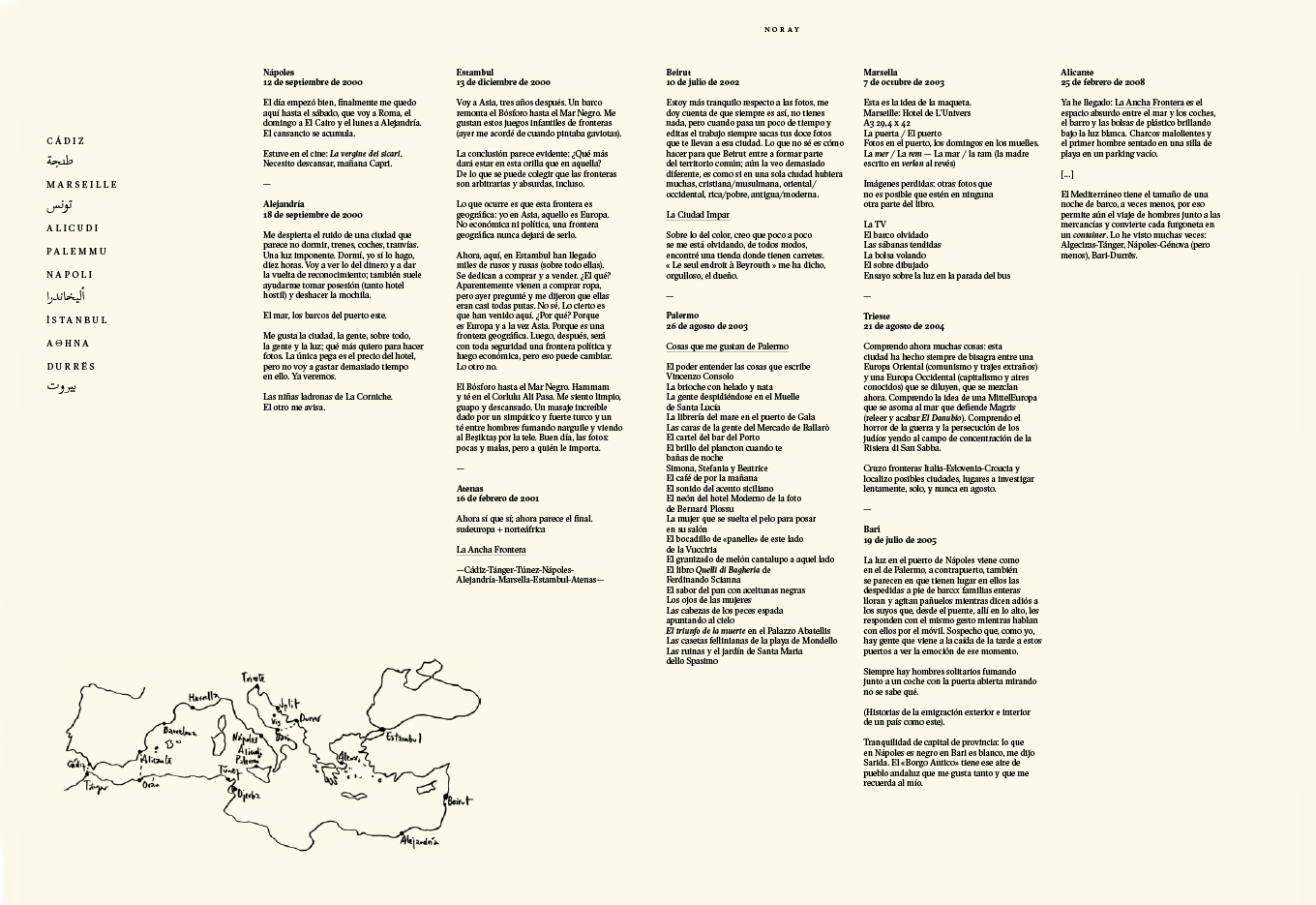An incomplete atlas which, by combining words and images with geography and personal histories, seeks to explore the lives of people closely connected to the territories they inhabit or to the places they once had to abandon. (Featuring: Noray, 1999-2012 Un lugar de la Mancha, 2006-2020 Salitre, 2009-2014 Ojos que no ven, corazón que no siente, 2008-2018 Dalind, 2013- )