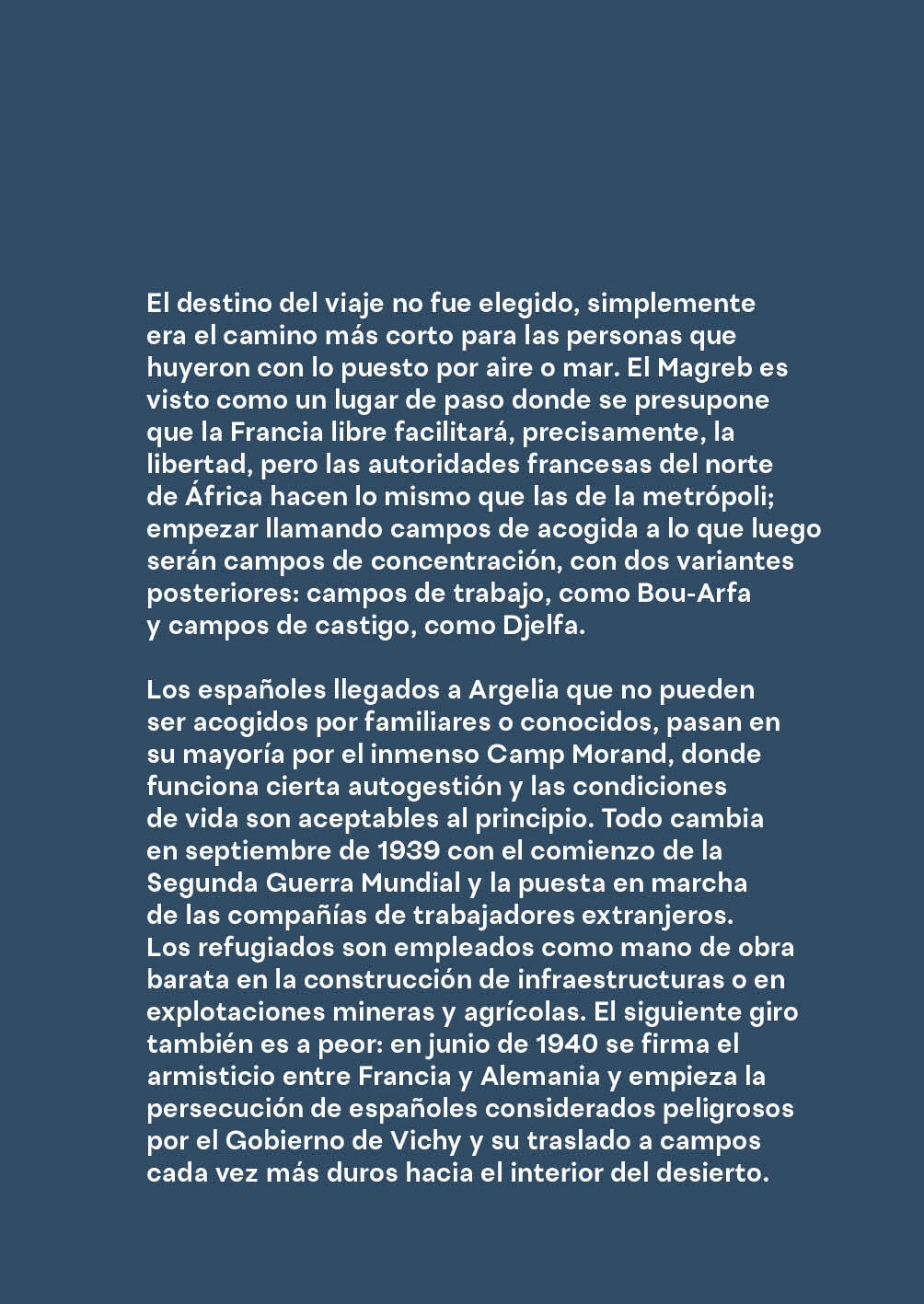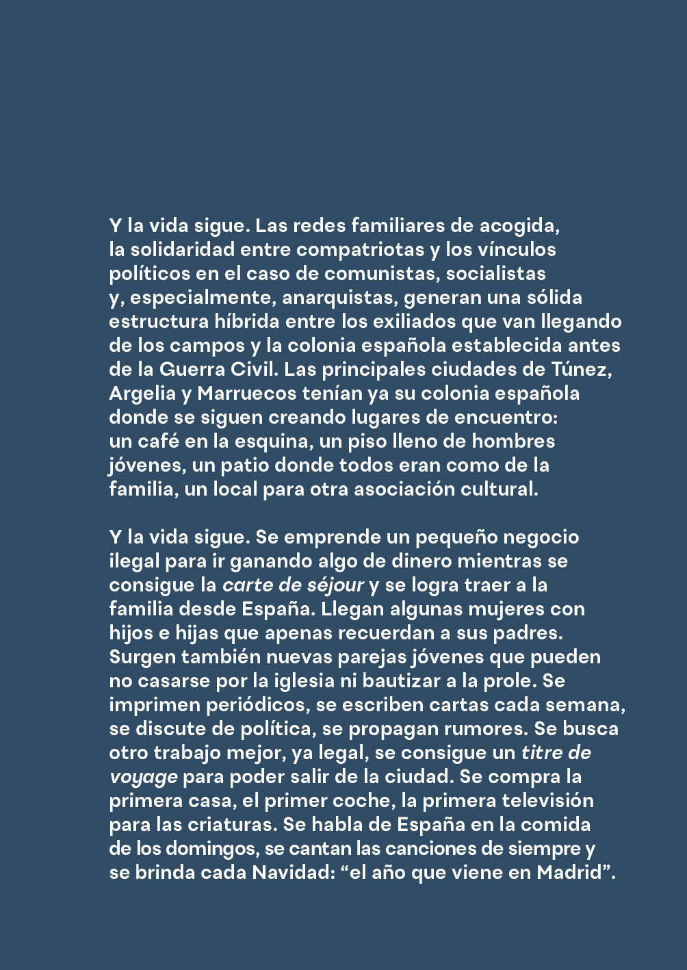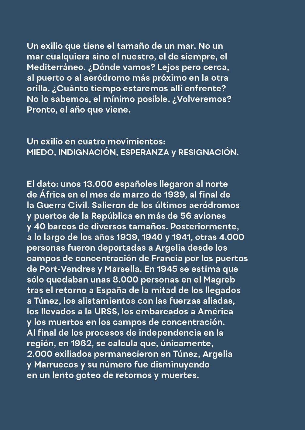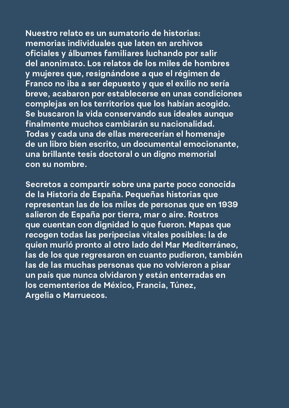 Un libro que cuenta la desconocida historia de los miles de personas que tuvieron que salir de España al final de la Guerra Civil y encontraron refugio, al otro lado del mar, en la región del Magreb (en los antiguos territorios de la Francia colonial, hoy Túnez, Argelia y Marruecos).