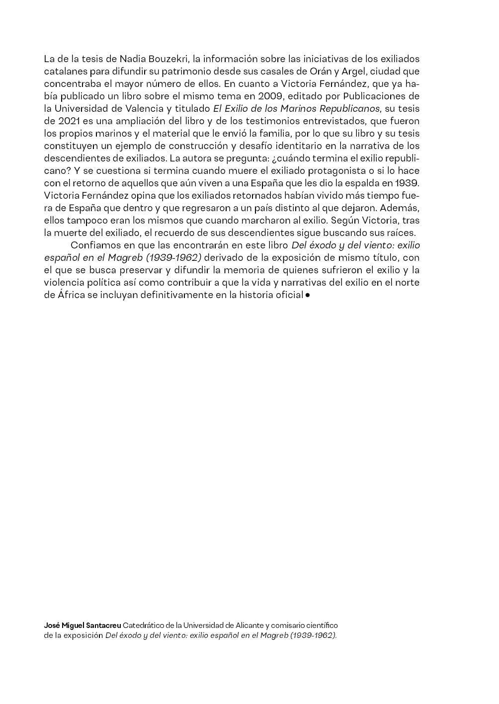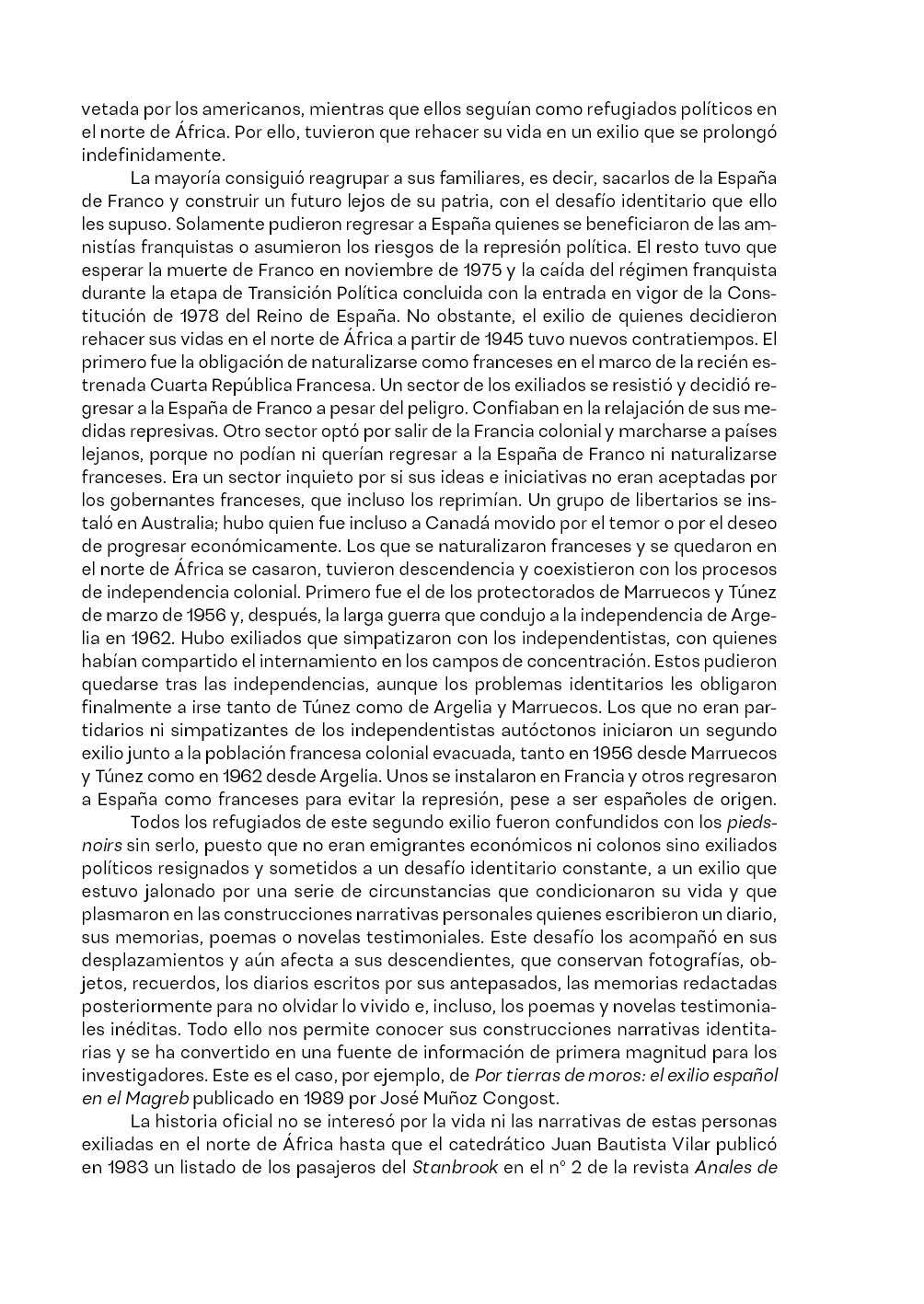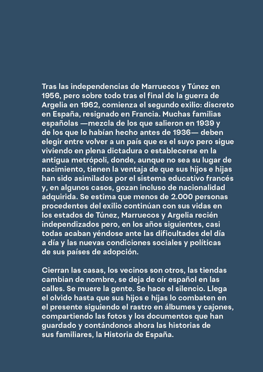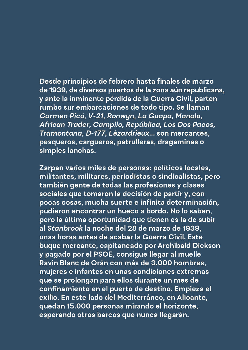 Un libro que cuenta la desconocida historia de los miles de personas que tuvieron que salir de España al final de la Guerra Civil y encontraron refugio, al otro lado del mar, en la región del Magreb (en los antiguos territorios de la Francia colonial, hoy Túnez, Argelia y Marruecos).