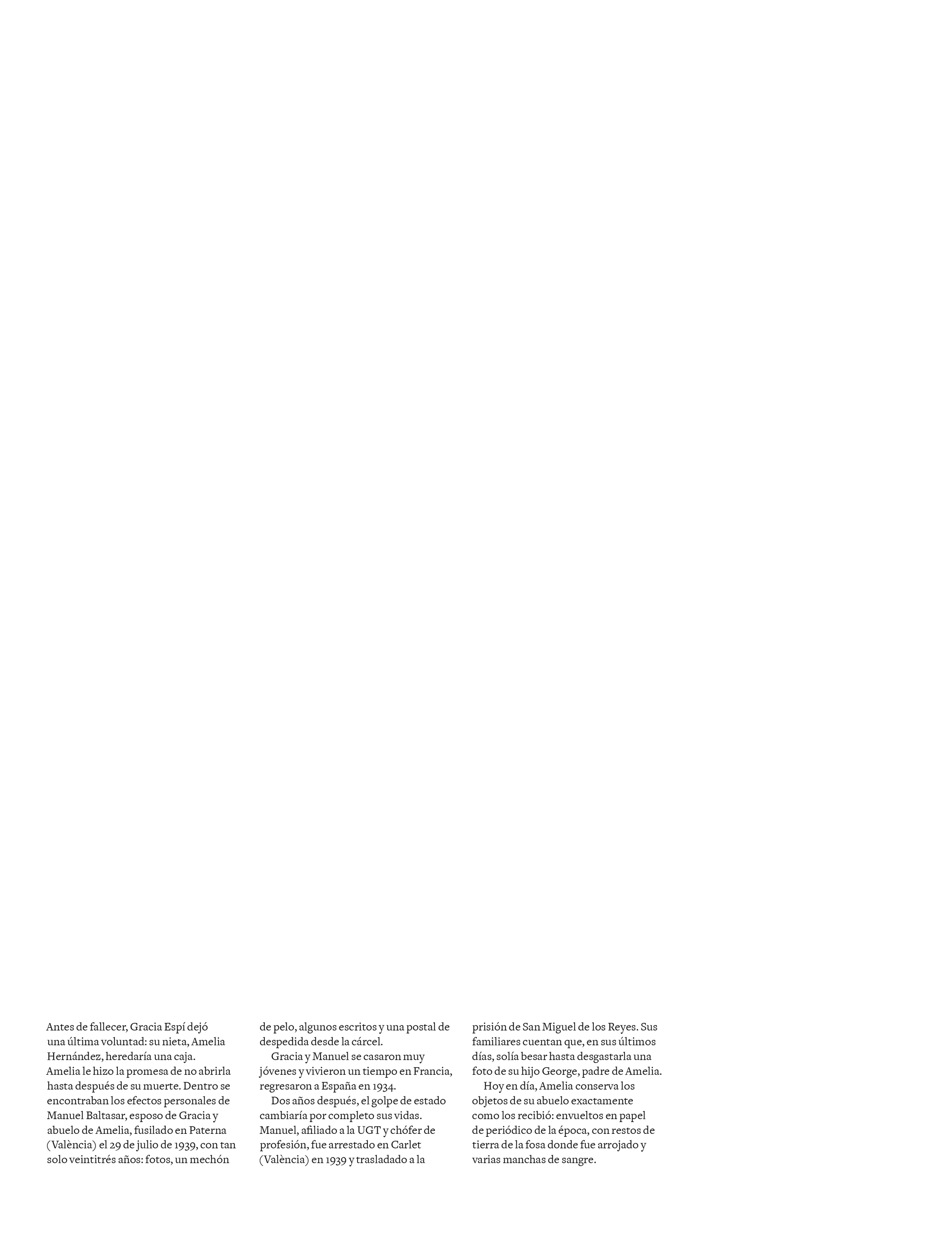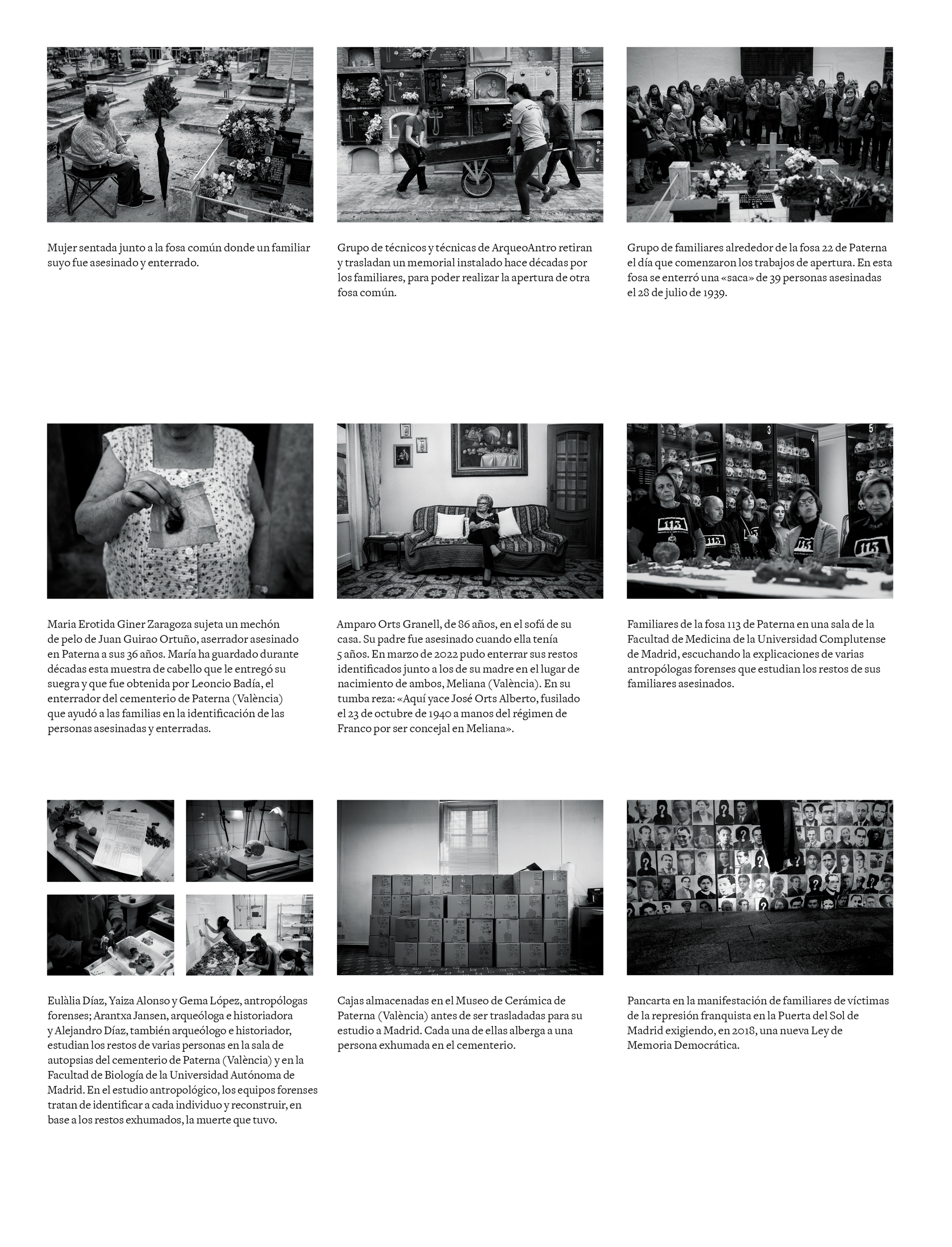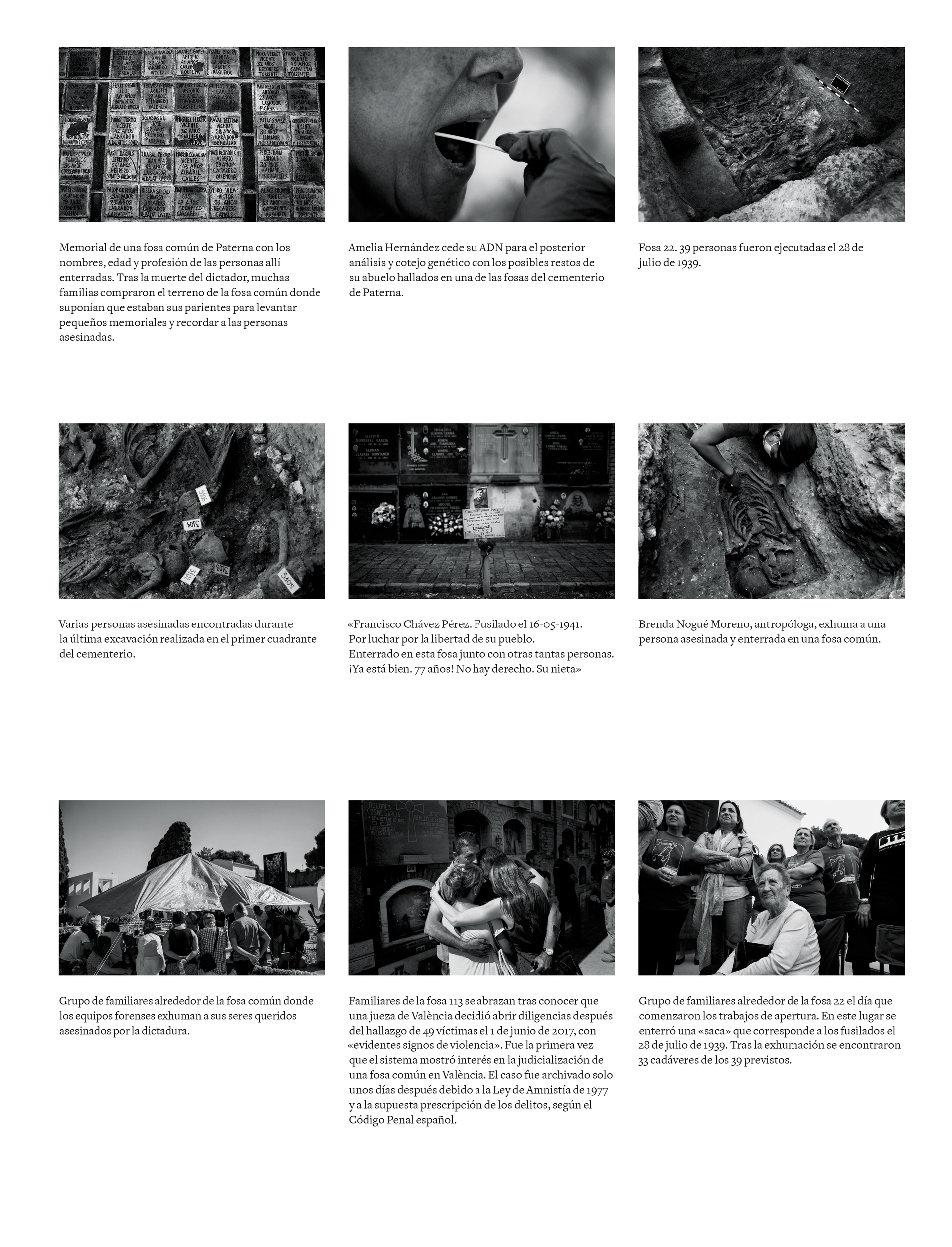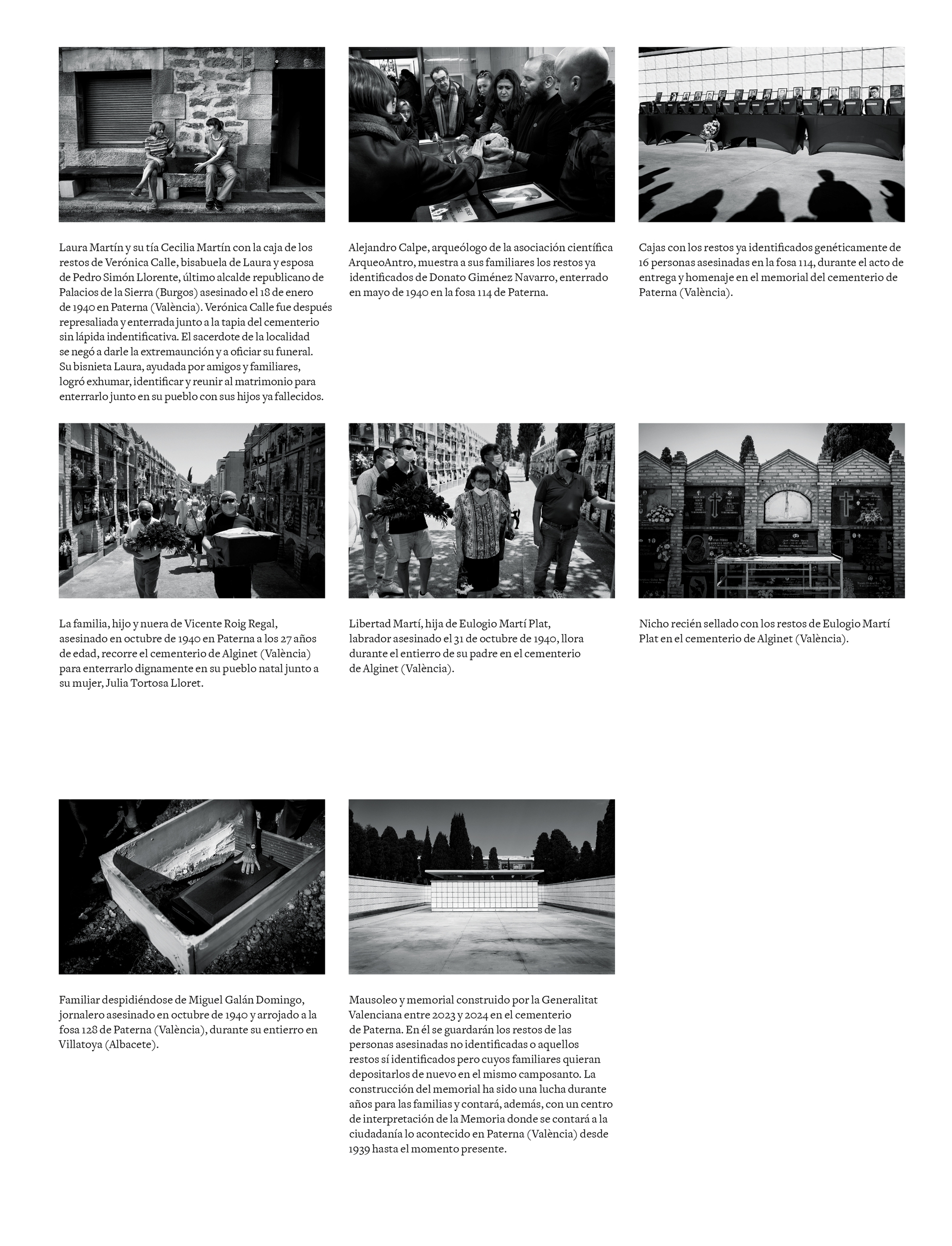 Un proyecto que ilumina la historia de la represión franquista en Paterna (Valencia) entre 1939 y 1956 mediante el acompañamiento cercano a las familias y a los equipos forenses que luchan por la dignidad arrebatada. El relato va en paralelo al complejo y hermoso proceso de localización, exhumación, identificación, entrega e inhumación.