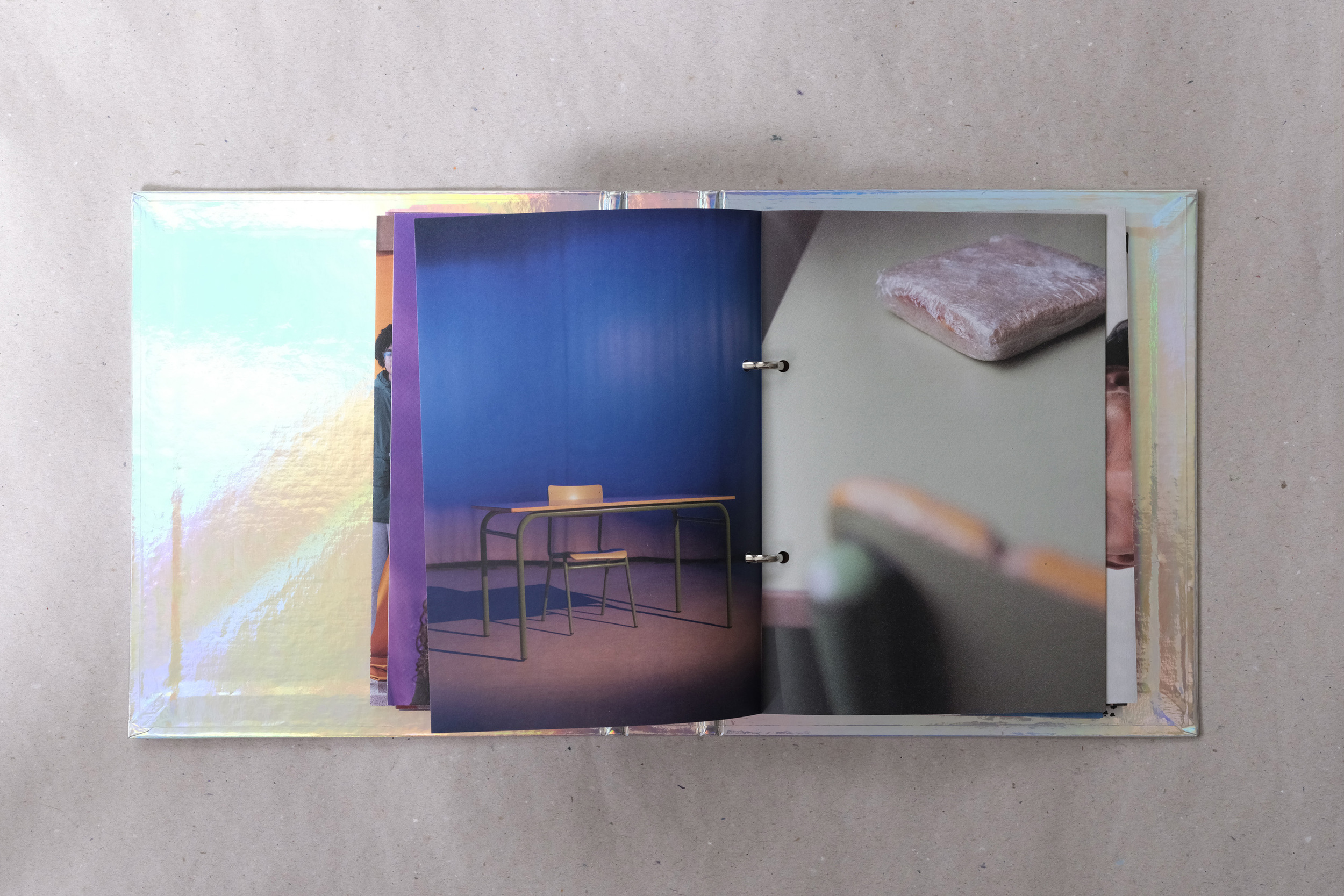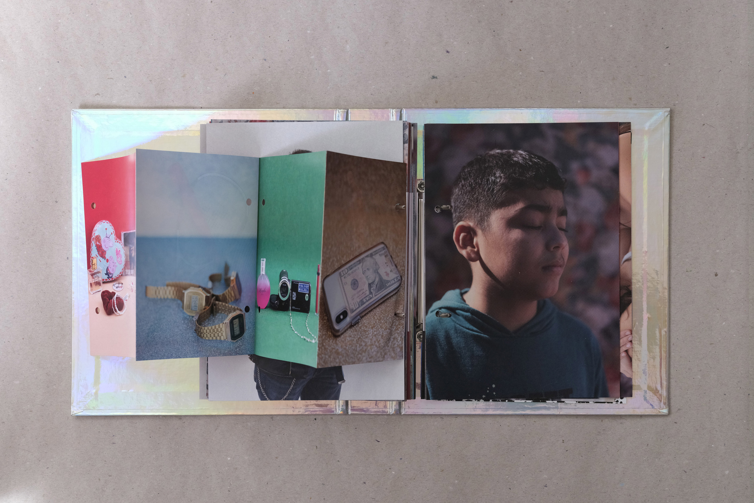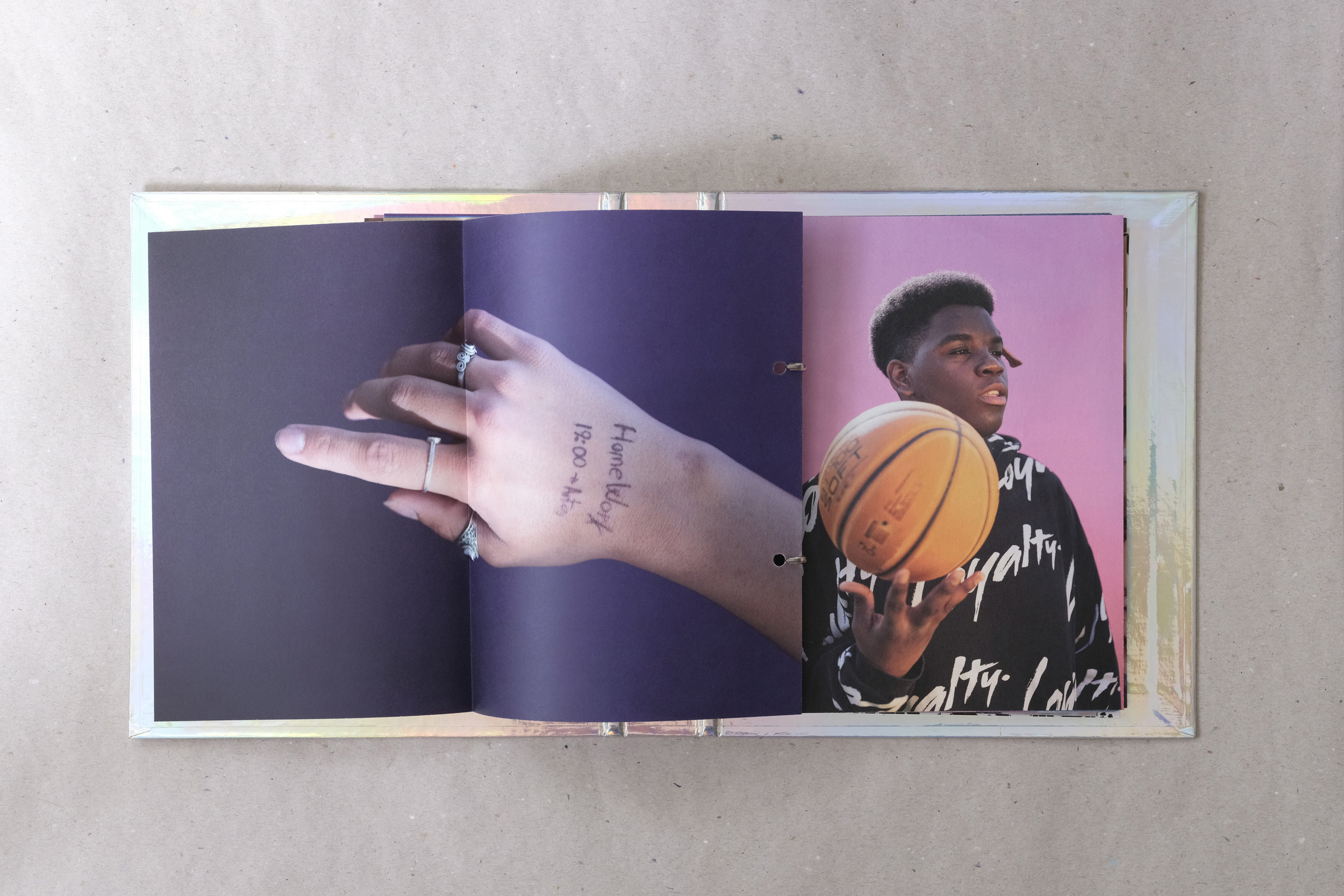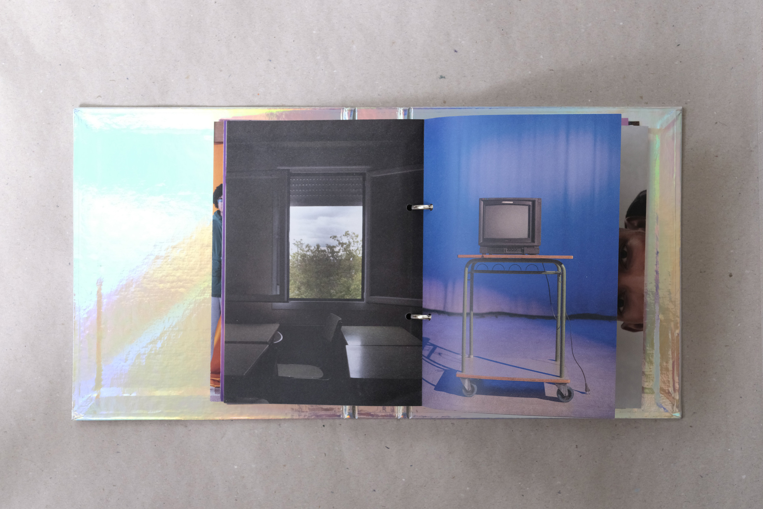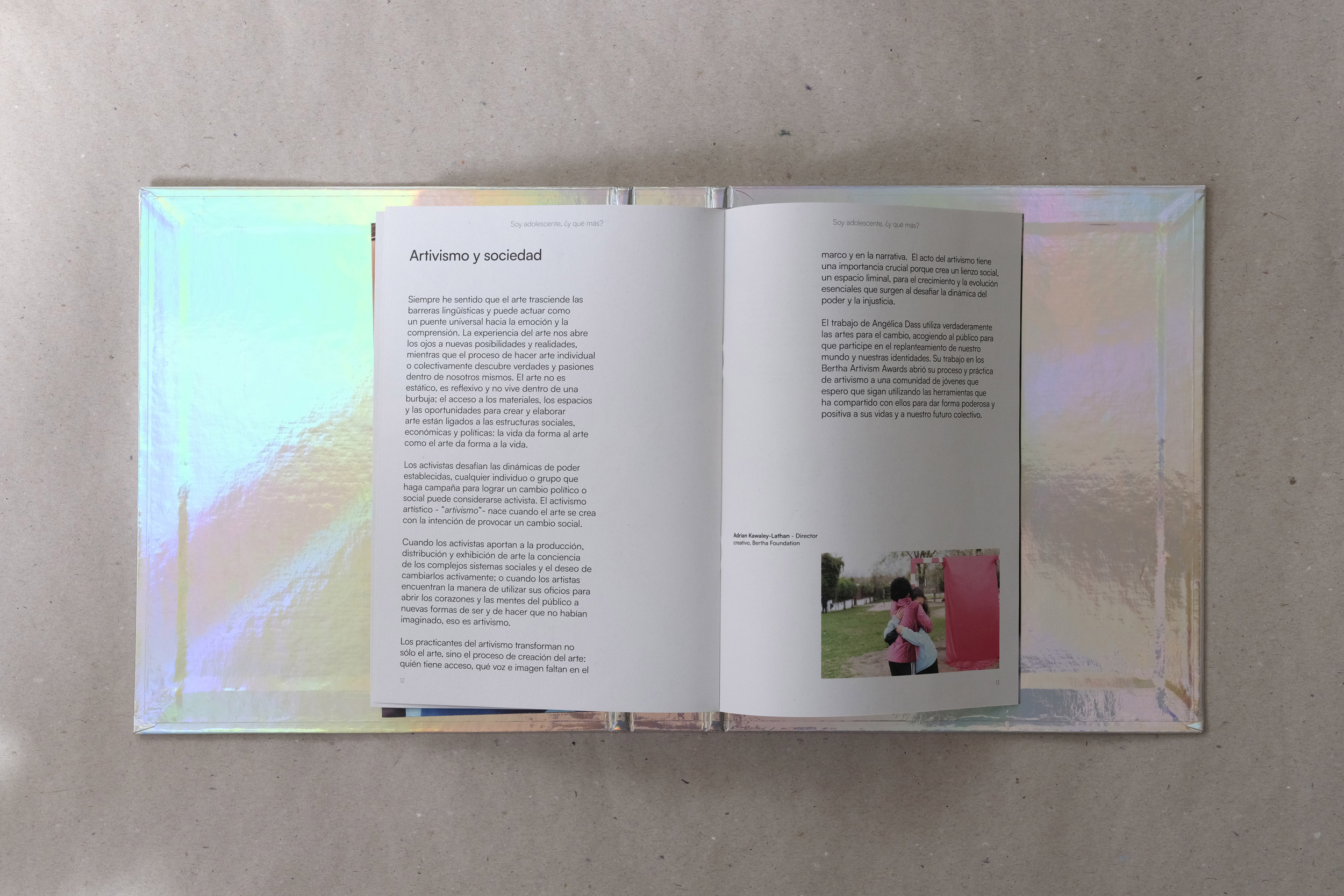 Un proyecto colectivo de autodefinición adolescente recogido en un archivador iridiscente con retratos, objetos y palabras en diferentes piezas, fichas y desplegables.